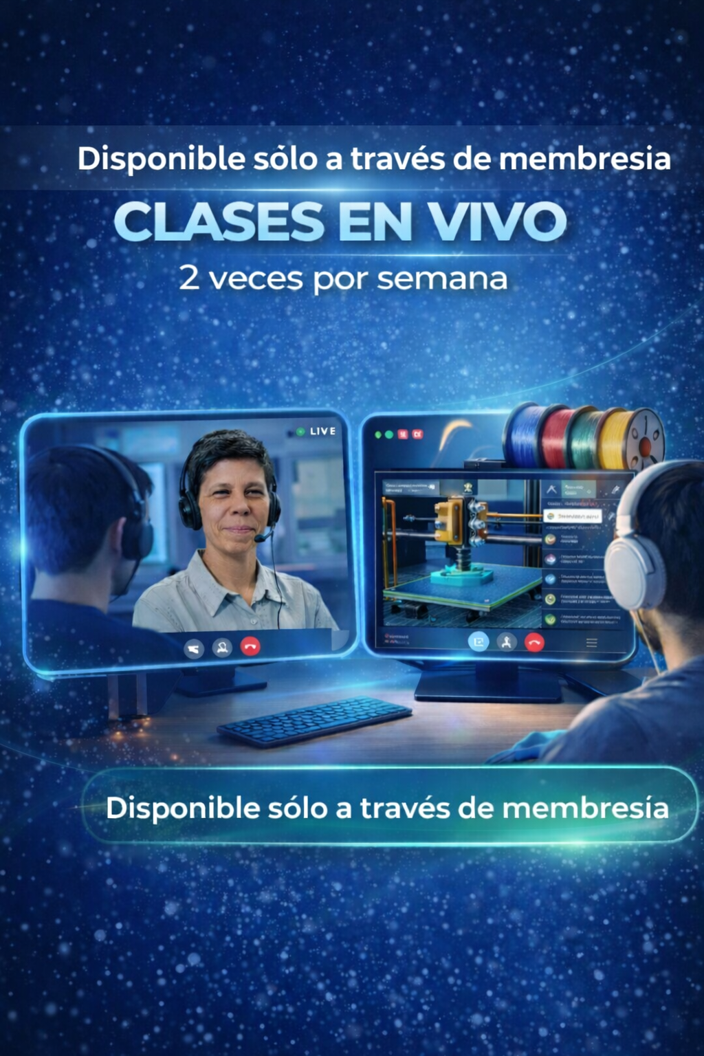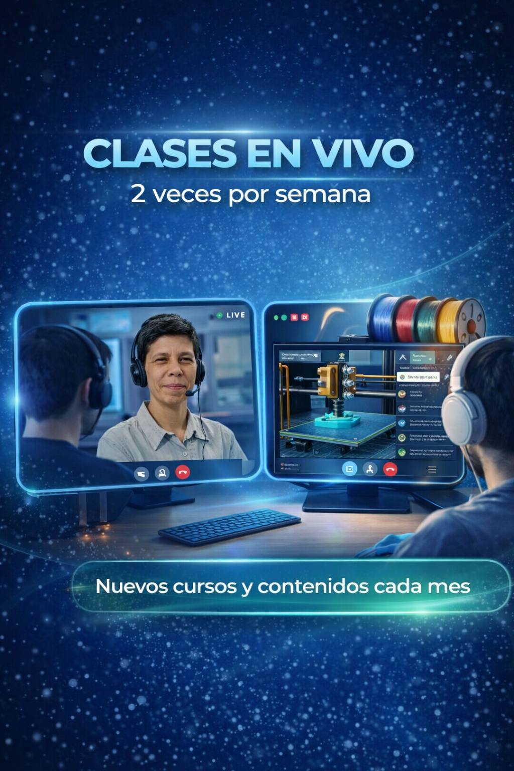 En la academia realizamos clases en vivo dos veces por semana, pensadas para acompañarte en tu aprendizaje y ayudarte a resolver dudas reales que surgen mientras imprimís o estudiás.