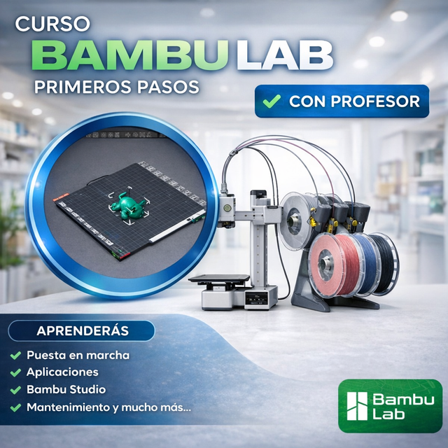 Aprenderás a manejar por completo y paso a paso tu Bambu Lab asistido por un profesor.